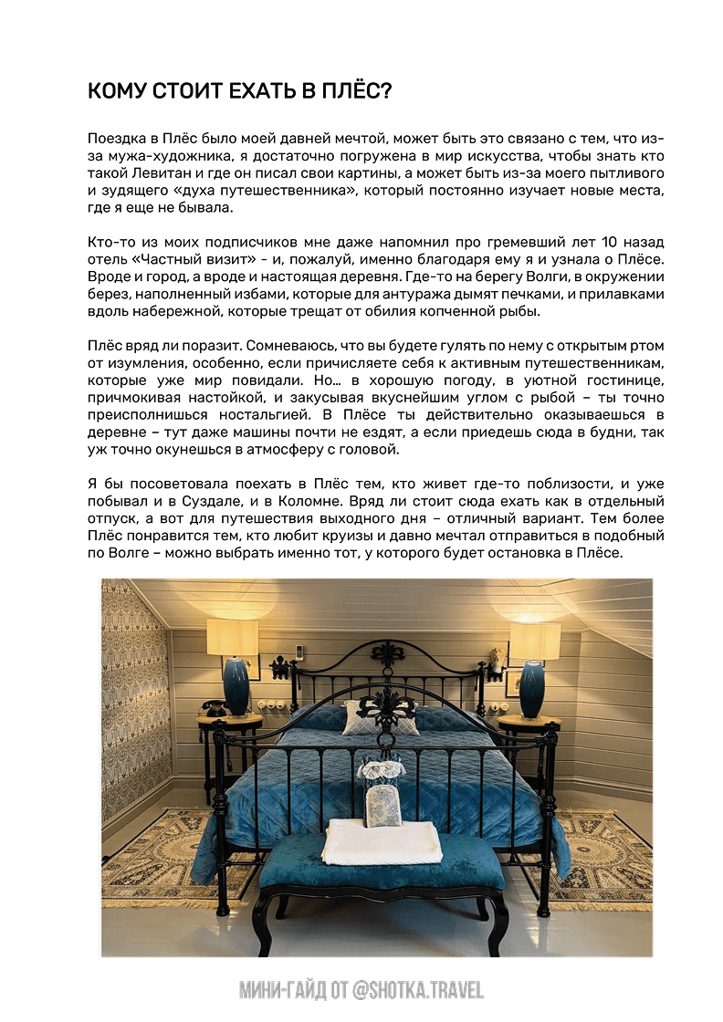 Кажется, я мечтала о Плёсе лет 10 — казалось бы, до него рукой подать. Но меня всегда останавливали стереотипы, которыми набит интернет. Про то, что отели минимум за 30 000 рублей в сутки, добраться очень сложно, а уж поесть там вообще безумно дорого. Наконец-то я решила рискнуть и проверить все на собственном опыте. А правдивы ли все эти слухи? Стоит ли ехать сюда?